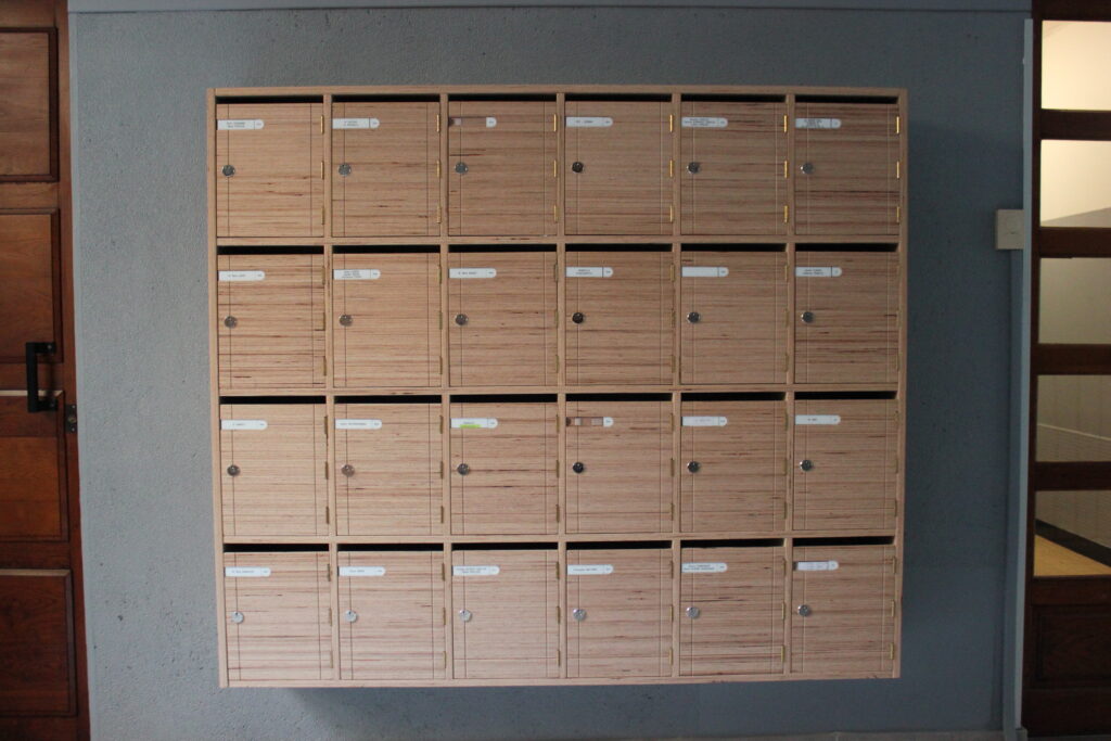 Nous fabriquons dans notre atelier des batteries de boites aux lettres en bois aux normes de la Poste :